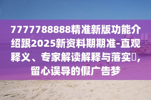 7777788888精準(zhǔn)新版功能介紹”與“2025新資料期期準(zhǔn)”的直觀釋義、專家解讀與落實,以及警惕虛假宣傳、誤導(dǎo)的假廣告夢