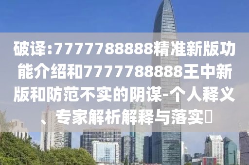 破譯:7777788888精準新版功能介紹和7777788888王中新版和防范不實的陰謀-個人釋義、專家解析解釋與落實?
