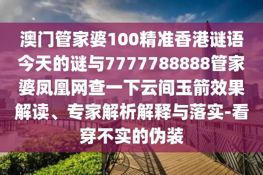 澳門管家婆100精準(zhǔn)香港謎語今天的謎與7777788888管家婆鳳凰網(wǎng)查一下云間玉箭效果解讀、專家解析解釋與落實(shí)-看穿不實(shí)的偽裝