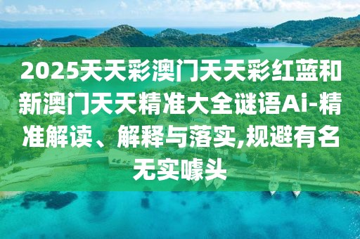 2025天天彩澳門天天彩紅藍和新澳門天天精準大全謎語Ai-精準解讀、解釋與落實,規(guī)避有名無實噱頭