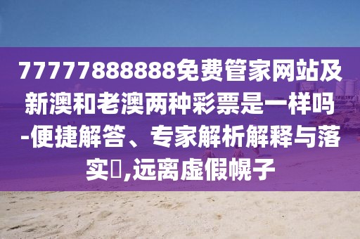 77777888888免費管家網(wǎng)站”以及新澳和老澳兩種彩票是否一樣的便捷解答、專家解析解釋與落實,我們需要從多個角度進行描述和解讀,以幫助用戶遠離虛假宣傳的幌子。