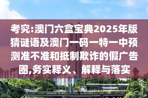 考究:澳門六盒寶典2025年版猜謎語及澳門一碼一特一中預(yù)測準(zhǔn)不準(zhǔn)和抵制欺詐的假廣告圈,務(wù)實(shí)釋義、解釋與落實(shí)