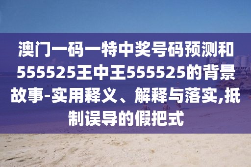 澳門一碼一特中獎號碼預測和555525王中王555525的背景故事:實用釋義、解釋與落實