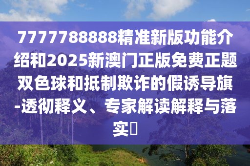 7777788888精準(zhǔn)新版功能介紹和2025新澳門正版免費(fèi)正題雙色球:透徹釋義、專家解讀解釋與落實(shí)?