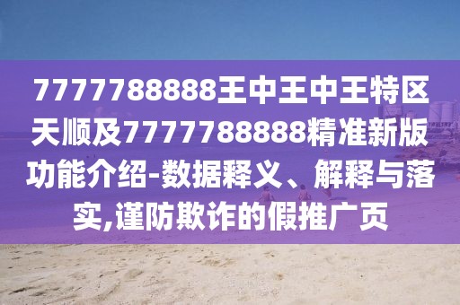 7777788888王中王中王特區(qū)天順”及“7777788888精準(zhǔn)新版功能介紹”的數(shù)據(jù)釋義、解釋與落實(shí),以及謹(jǐn)防欺詐的假推廣頁的相關(guān)概念及術(shù)語,我將從以下幾個方面進(jìn)行詳細(xì)闡述: