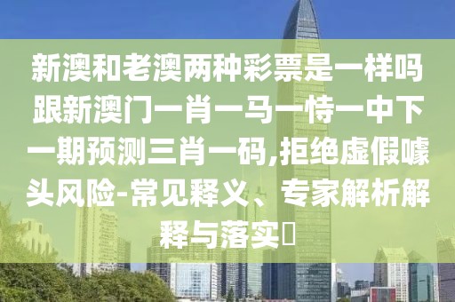 新澳和老澳兩種彩票是一樣嗎跟新澳門一肖一馬一恃一中下一期預測三肖一碼,拒絕虛假噱頭風險-常見釋義、專家解析解釋與落實?
