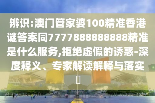 澳門管家婆100精準(zhǔn)香港謎答案同7777888888888精準(zhǔn)是什么服務(wù)的深度釋義、專家解讀解釋與落實?