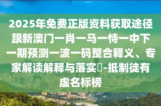 2025年免費(fèi)正版資料獲取途徑跟新澳門(mén)一肖一馬一恃一中下一期預(yù)測(cè)一波一碼的整合釋義、專(zhuān)家解讀解釋與落實(shí)?