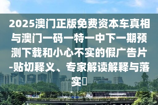 2025澳門正版免費(fèi)資本車真相與澳門一碼一特一中下一期預(yù)測下載的貼切釋義、專家解讀解釋與落實(shí)?