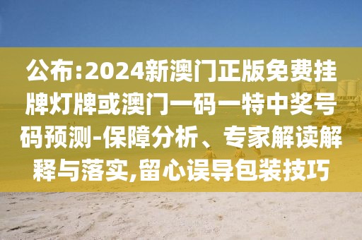 2024新澳門正版免費掛牌燈牌或澳門一碼一特中獎號碼預測:保障分析、專家解讀解釋與落實