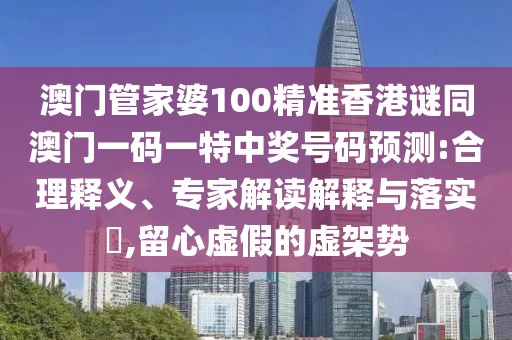 澳門管家婆100精準香港謎同澳門一碼一特中獎號碼預測:合理釋義、專家解讀解釋與落實?