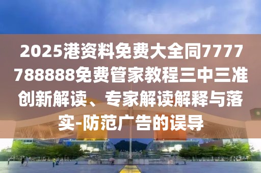 2025港資料免費(fèi)大全同7777788888免費(fèi)管家教程三中三準(zhǔn)”的創(chuàng)新解讀、專家解讀解釋與落實(shí)及防范廣告的誤導(dǎo)