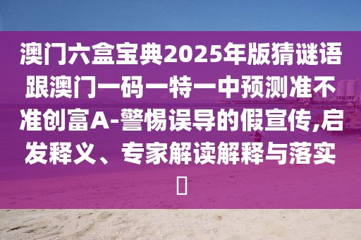 澳門六盒寶典2025年版猜謎語跟澳門一碼一特一中預(yù)測準(zhǔn)不準(zhǔn)創(chuàng)富A:啟發(fā)釋義、專家解讀解釋與落實(shí)?