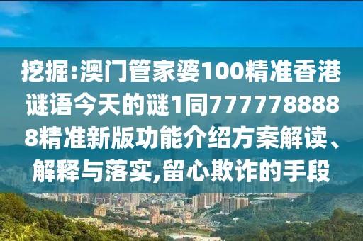 澳門管家婆100精準(zhǔn)香港謎語今天的謎1同7777788888精準(zhǔn)新版功能介紹:方案解讀、解釋與落實(shí)