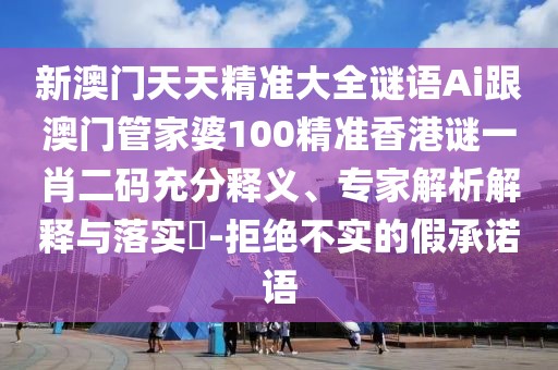 關(guān)于新澳門天天精準大全謎語Ai、澳門管家婆100精準香港謎一肖二碼等相關(guān)內(nèi)容的全面釋義、解釋與落實,以及拒絕不實的假承諾語
