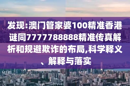 澳門管家婆100精準(zhǔn)香港謎同7777788888精準(zhǔn)傳真解析的科學(xué)釋義、解釋與落實(shí)