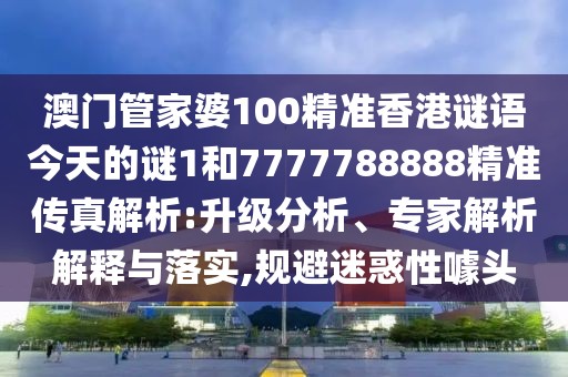 澳門(mén)管家婆100精準(zhǔn)香港謎語(yǔ)今天的謎1和7777788888精準(zhǔn)傳真解析的升級(jí)分析、專(zhuān)家解析解釋與落實(shí)