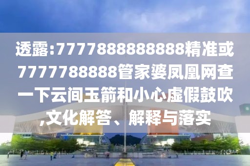 透露:7777888888888精準(zhǔn)或7777788888管家婆鳳凰網(wǎng)查一下云間玉箭和小心虛假鼓吹,文化解答、解釋與落實