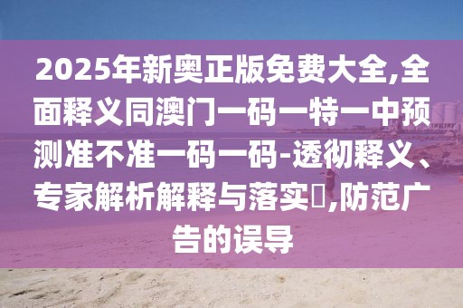 隨著網(wǎng)絡(luò)技術(shù)的發(fā)展,各類信息層出不窮,其中不乏一些涉及博彩、預(yù)測類的廣告信息,對于這類信息,我們需保持高度警惕,避免被廣告誤導(dǎo),本文將圍繞“2025年新奧正版免費(fèi)大全”、“澳門一碼一特一中預(yù)測”等相關(guān)概念進(jìn)行透徹釋義,并通過專家解析,幫助用戶更好地理解和落實(shí)相關(guān)概念,以防范廣告的誤導(dǎo)。