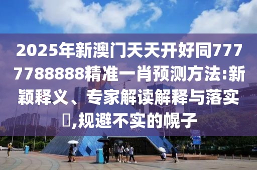 2025年新澳門天天開好同7777788888精準(zhǔn)一肖預(yù)測方法”的新穎釋義、專家解讀解釋與落實(shí),以及公眾應(yīng)如何警惕虛假宣傳的提醒