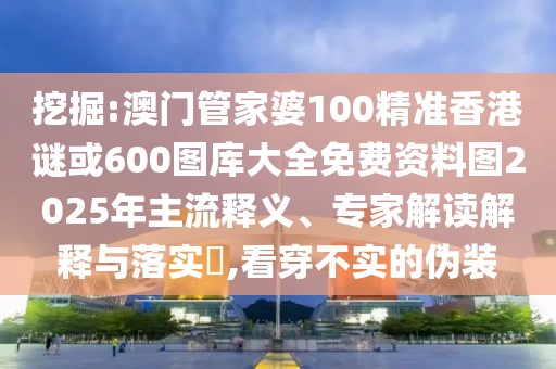 澳門管家婆100精準(zhǔn)香港謎”或“600圖庫大全免費(fèi)資料圖2025年”的概念,我們需要從多個角度進(jìn)行解讀,包括主流釋義、專家解讀以及實(shí)際落實(shí)情況,本文將幫助用戶深入了解這些概念,看穿其背后可能存在的不實(shí)偽裝。