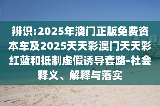 關(guān)于辨識“2025年澳門正版免費資本車及2025天天彩澳門天天彩紅藍”的社會釋義、解釋與落實,抵制虛假誘導套路