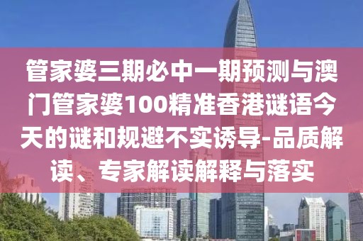 管家婆三期必中一期預(yù)測(cè)”與“澳門(mén)管家婆100精準(zhǔn)香港謎語(yǔ)今天的謎”的品質(zhì)解讀、專(zhuān)家解讀解釋與落實(shí),以及警惕虛假宣傳的內(nèi)容