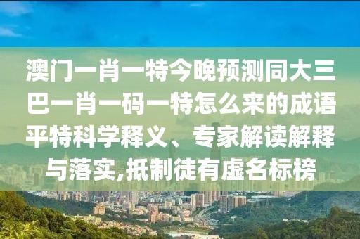 澳門一肖一特今晚預測同大三巴一肖一碼一特怎么來的成語平特的科學釋義、專家解讀解釋與落實