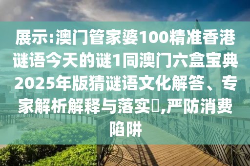 展示:澳門管家婆100精準香港謎語今天的謎1同澳門六盒寶典2025年版猜謎語文化解答、專家解析解釋與落實?,嚴防消費陷阱