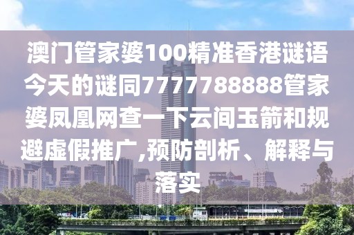 澳門管家婆100精準香港謎語今天的謎同7777788888管家婆鳳凰網(wǎng)查一下云間玉箭和規(guī)避虛假推廣,預(yù)防剖析、解釋與落實