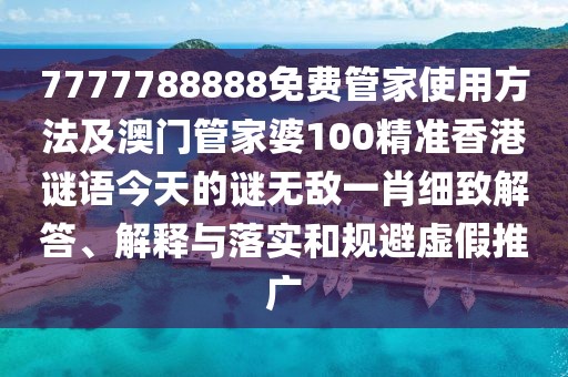 關于7777788888免費管家使用方法及澳門管家婆100精準香港謎語今天的謎無敵一肖的概念,有很多用戶可能對其存在誤解或困惑,以下是對這些概念的細致解答、解釋與落實,以幫助用戶更好地了解并規(guī)避虛假推廣。