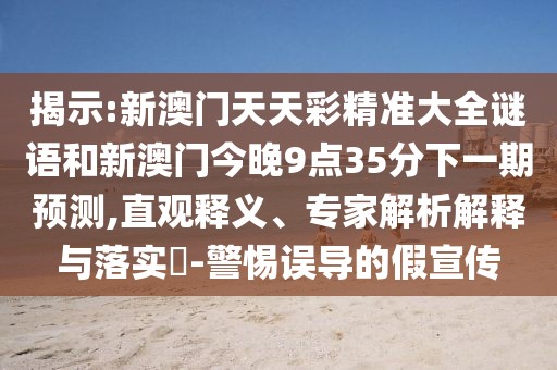 關(guān)于揭示新澳門天天彩精準(zhǔn)大全謎語(yǔ)和新澳門今晚9點(diǎn)35分下一期預(yù)測(cè)的相關(guān)內(nèi)容,以及警惕誤導(dǎo)的假宣傳的解讀與落實(shí),我們可以從直觀釋義、專家解析解釋與落實(shí)等方面進(jìn)行深入探討。