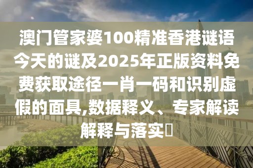 澳門管家婆100精準(zhǔn)香港謎語今天的謎及2025年正版資料免費獲取途徑一肖一碼:數(shù)據(jù)釋義、專家解讀解釋與落實?