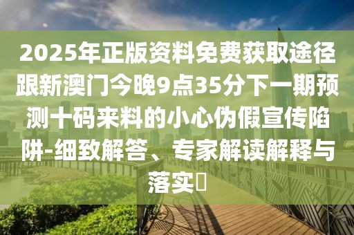 2025年正版資料免費(fèi)獲取途徑跟新澳門今晚9點(diǎn)35分下一期預(yù)測十碼來料的小心偽假宣傳陷阱-細(xì)致解答、專家解讀解釋與落實(shí)?